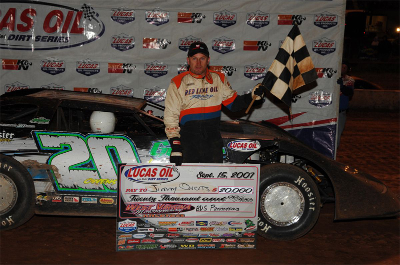 Jimmy captures $20,000 for winning the 'RaceFest World Championship' at the West Virginia Motor Speedway in 2007 - Rick Schwallie Photos