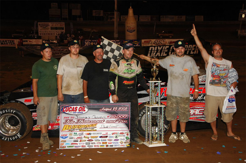Jimmy reaches victory lane at the Bluegrass (KY) Speedway on August 23, 2008 -