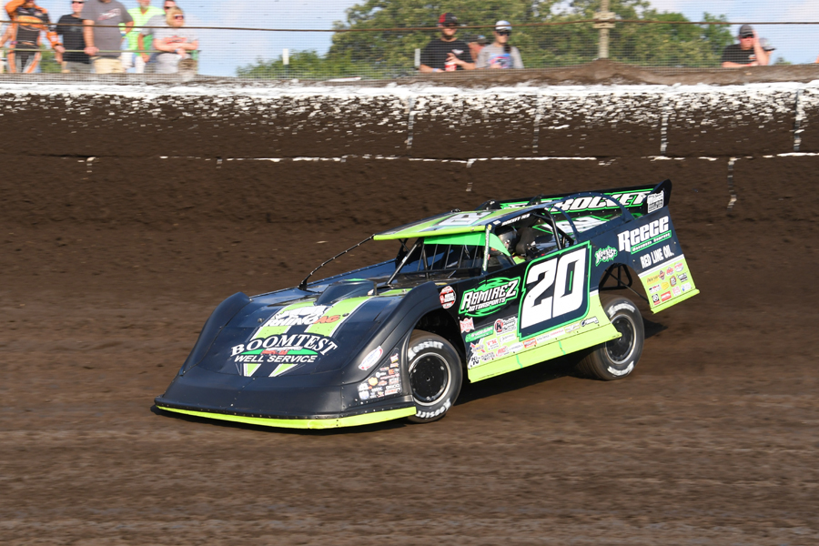 Jimmy Owens mashes the gas during the 'Prairie Dirt Classic' at Fairbury (IL) Speedway in July 2019 - Todd Healy Photo